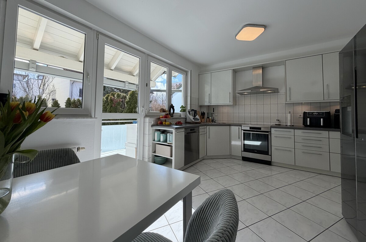 Die einladende Wohnküche, mit direkt angrenzender praktischer Speisekammer, schafft viel Platz für Genuss und Geselligkeit. Von hier betrittst Du ebenfalls den überdachten Balkon und genießt entspannte Stunden.