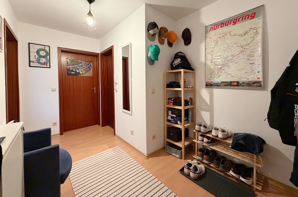 Des Weiteren stehen Ihnen ein großzügiges Schlafzimmer, ein geräumiger Flur-/Eingangsbereich sowie ein innenliegendes Badezimmer zum Wohlfühlwohnen zur Verfügung.