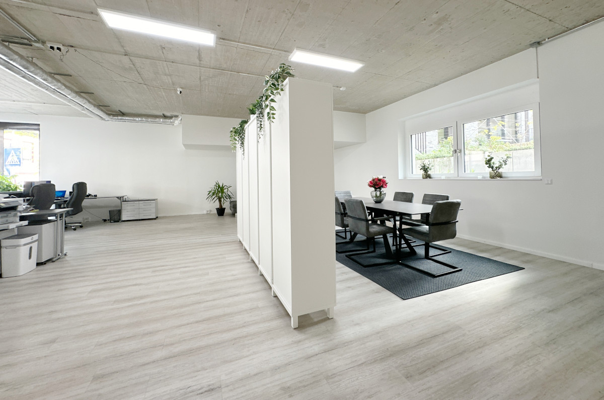 Die großflächigen Fenster lassen reichlich Tageslicht herein und schaffen eine angenehme Arbeitsatmosphäre, die nicht nur Ihr Wohlbefinden steigert, sondern auch die Wahrnehmung von Ihren Kunden und Geschäftspartnern positiv beeinflussen wird.