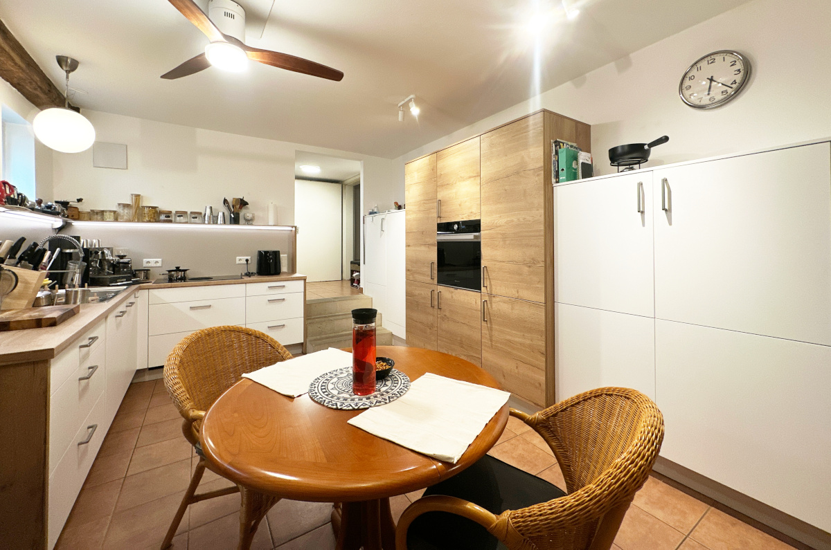 - offene Küche mit moderner und gepflegter Einbauküche (2023) und integriertem Essbereich