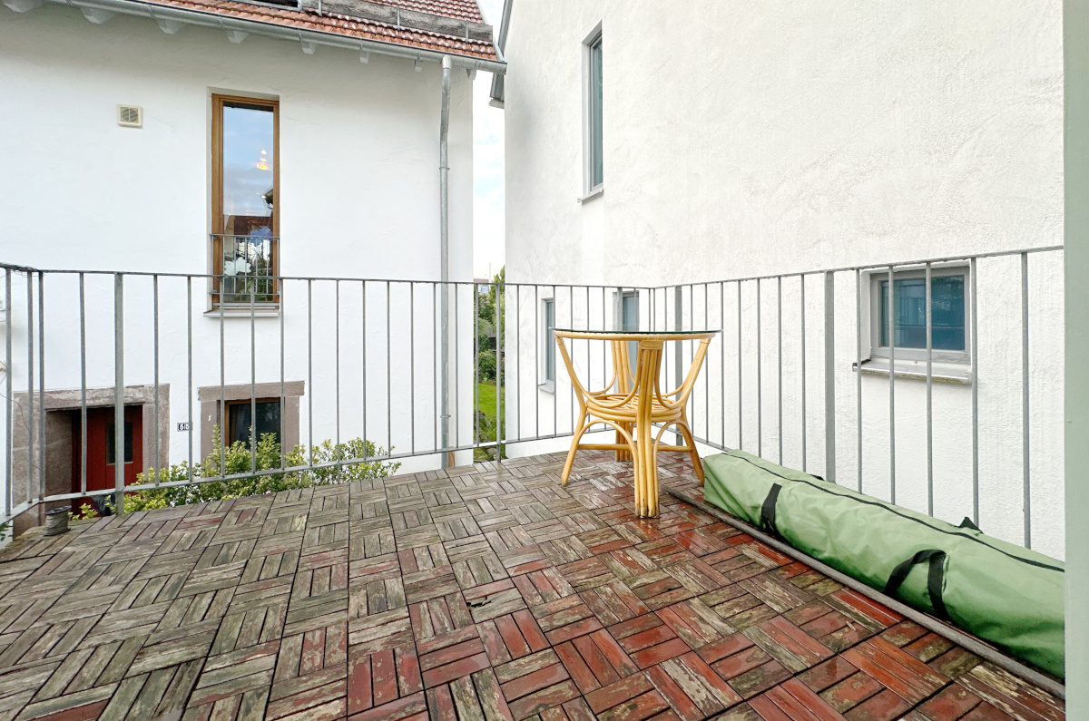 - Büro mit Zugang zur Terrasse (überdacht durch Balkon)