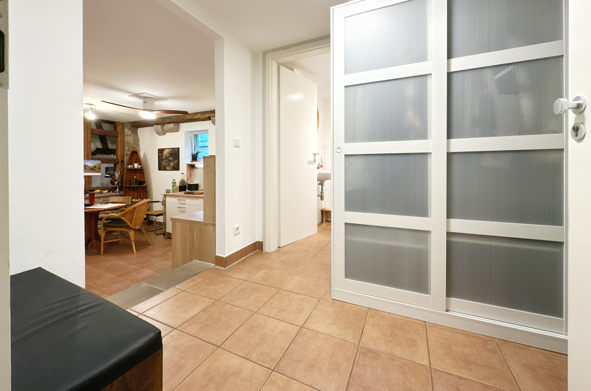 Diese außergewöhnliche, im Jahr 2002 sanierte 3-Zimmer-Wohnung befindet sich in einem denkmalgeschützten Mehrparteienhaus mit nur 4 Parteien aus etwa 1820, zentral gelegen in Gerlingen.
