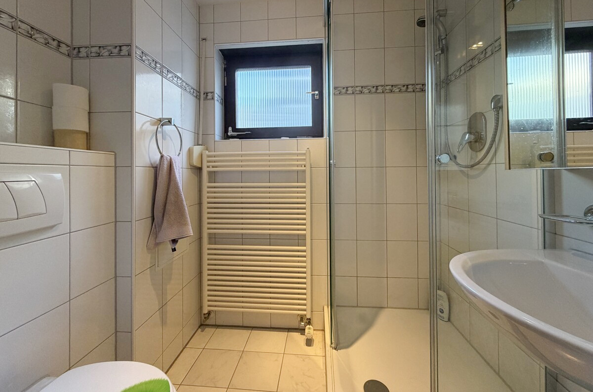 - Tageslichtbad mit Dusche, Waschbecken und WC