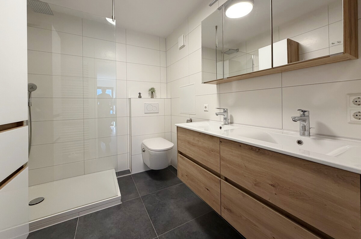 - Badezimmer mit Dusche, großes Waschbecken und WC 01/2025